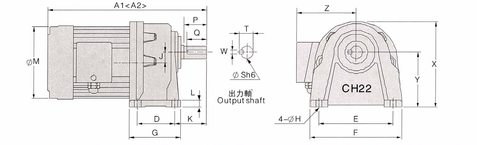 CH 臥式減速電機(jī)尺寸表: 點(diǎn)擊對應(yīng)的下載鏈接即可下載該尺寸圖 (備注:A1:三相電機(jī)尺寸,A2:單相電機(jī)尺寸)